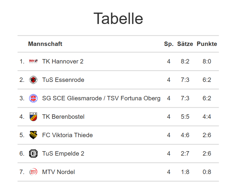 Zwei Spiele, gegen MTV Nordel und Victoria Thiede, konnten mit starken Auftritten gewonnen werden, dem Ligaprimus, TK Hannover 2, wurde ein Satz abgenommen.